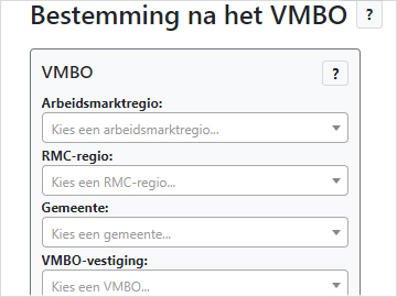 In de stroomdiagrammen ‘Bestemming na het VMBO’ op de website van Sterk Beroepsonderwijs, worden leerlingstromen tussen VMBO-vestigingen en MBO-instellingen getoond. Zowel het voortgezet onderwijs als het middelbaar beroepsonderwijs kan zo zien met welke vestigingen en instellingen men in gesprek kan gaan om het beroepsonderwijs te versterken.
