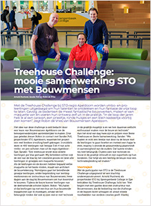 Met de Treehouse Challenge bij STO-regio Apeldoorn worden vmbo- en pro-leerlingen uitgedaagd om hun talenten te ontdekken en hun fantasie de vrije loop te laten. Gevolg: ze bedenken de meest fantastische bouwwerken, maken er een maquette van én voeren hun ontwerp zelf uit in de praktijk. “In de loop der jaren heb ik al een caravan, een prieeltje, ronde huisjes en een klein kasteeltje voorbij zien komen”, zegt Robin de Vries van Bouwmensen Apeldoorn.