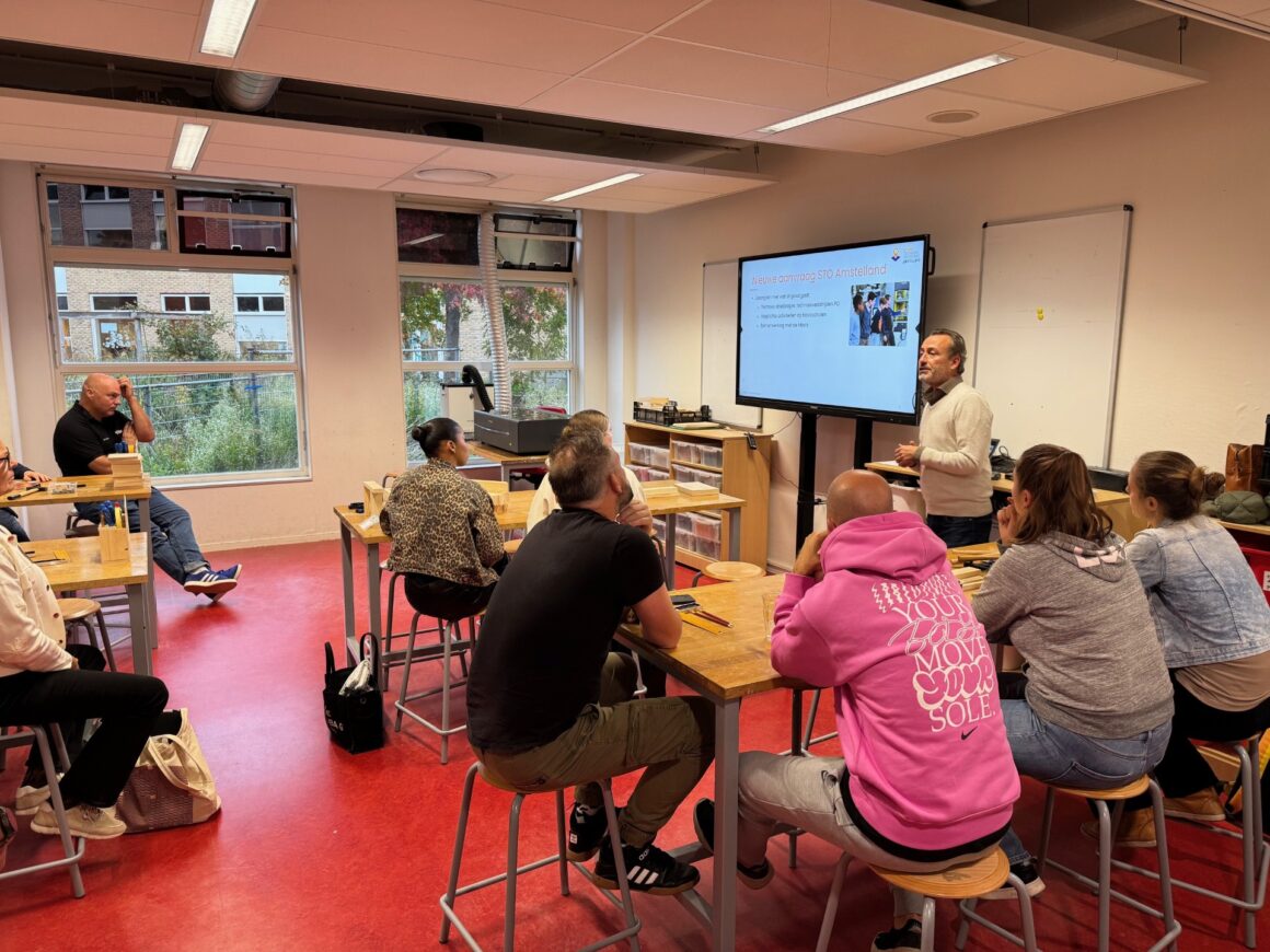 STO Amstelland en Vakcollege Thamen gaven op maandag 6 oktober invulling aan een studiedag voor leerkrachten van de onderwijsgroep Wijzer aan de Amstel. Na een introductie over STO en Techkwadraat konden de leerkrachten aan de slag.