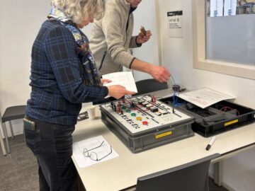 Vervolgens gingen we door naar Vakwijs Opleidingen. Daar werden we meegenomen in de wereld van de bbl-opleidingen en de manier waarop werken en leren krachtig wordt gecombineerd. Tijdens de rondleiding door de werkplaatsen zagen we levensechte, veilige praktijkomgevingen voor onder andere elektro-, installatie- en metaaltechniek. We gingen zelf ook aan de slag in een workshop, waardoor we opnieuw ervaarden hoe belangrijk praktijkgericht leren is.