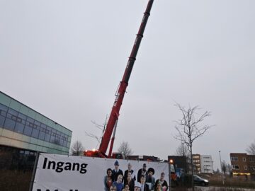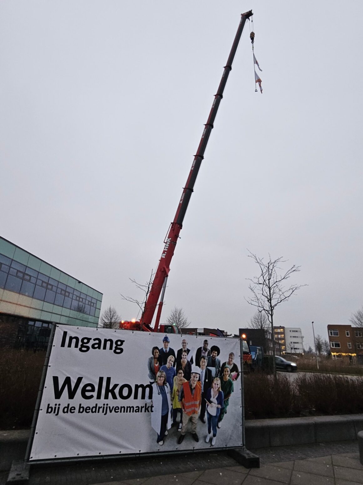 Niet alleen in de aula’s van de scholen, maar ook buiten was er een hoop te zien en te beleven! Een indrukwekkende kraan van HAK Transport en een tweetal vrachtwagens van Van Leeuwen Transport en Koninklijke Euser B.V., een trekker van ErfGoed, Waterschap Hollandse Delta met hun crisisbus, Brandweer Barendrecht met een grote blusauto, een Mercedes auto van Van Mossel Mercedes-Benz en tot slot een demonstratie dakdekken door HBM Dakbedekking.
