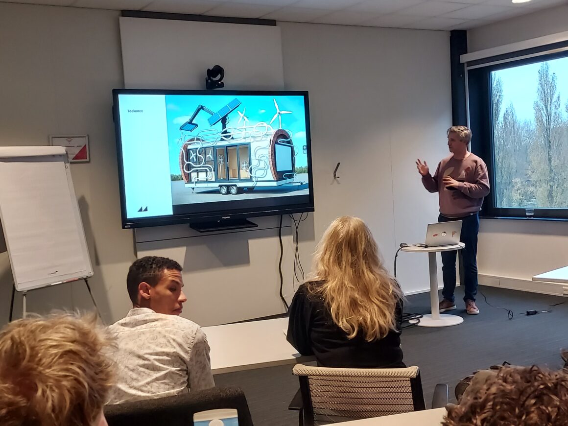 Zo was er op 3 november een heel interessante presentatie over de TransitieTrailer: een circulair en biobased tiny house op wielen. De transitietrailer is ontworpen en gebouwd door studenten van het Da Vinci College in samenwerking met Bouwmensen. Komend semester zetten nieuwe studententeams de volgende stap: de energietransitie zichtbaar en tastbaar maken in en rond de trailer.