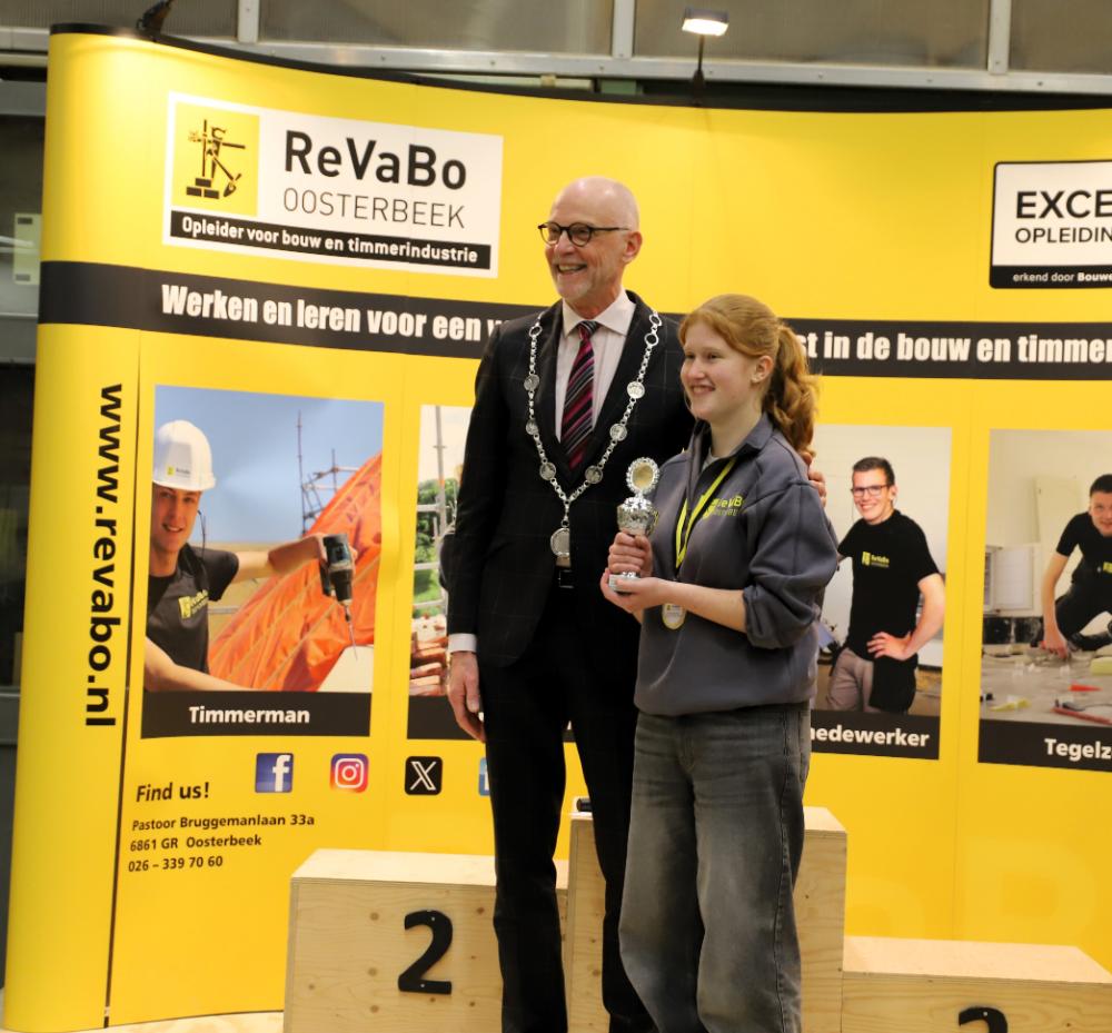 Tijdens de jaarlijkse timmer- en metselwedstrijden van ReVaBo in Oosterbeek liet de 16-jarige Luna zien dat vakmanschap in de bouw geen kwestie is van jongen of meisje, maar van talent en inzet. Luna, leerling van de opleiding Bouw Wonen Interieur (BWI) van Het Streek College te Ede, behaalde een knappe derde plaats bij de timmerwedstrijden en ging naar huis met een mooie beker.