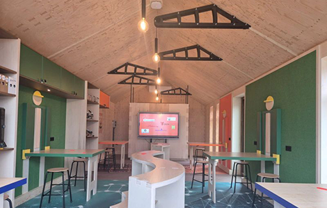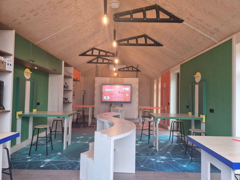 In eerste instantie was het plan van de school om een noodlokaal te laten bouwen. Maar al snel werd duidelijk dat er veel meer uit dat project te halen viel. De constructie van het gebouw werd een schoolopdracht op zich. Leerlingen uit verschillende leerwegen en profielen, van BWI tot PIE en praktijkonderwijs, bouwden samen aan het ‘lab’.