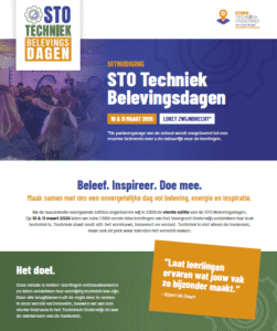 Na de succesvolle voorgaande edities organiseren wij in 2026 de vierde editie van de STO Belevingsdagen. Op 10 & 11 maart 2026 laten we ruim 1.500 eerste klas leerlingen van het Voorgezet Onderwijs ontdekken hoe leuk techniek is. Techniek staat nooit stil: het vernieuwt, innoveert en verrast. Techniek is niet alleen de toekomst,